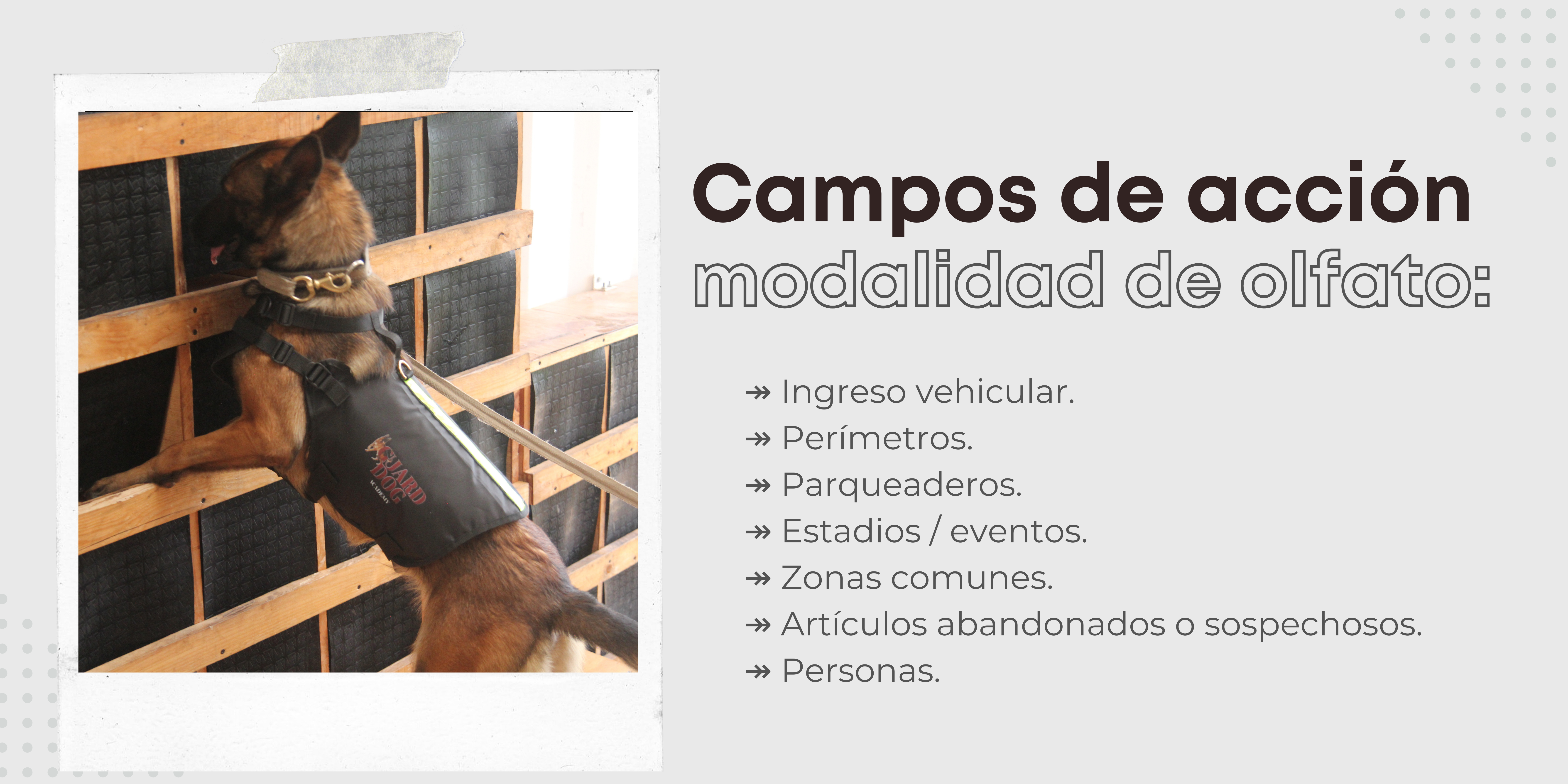 Guard Dog Academy es una empresa Colombiana dedicada a criar y entrenar caninos de seguridad para las empresas; combinando su pasión por los caninos y la atención al detalle, el equipo Guard Dog brinda un riguroso entrenamiento y excelente cuidado a sus ejemplares, son entrenados con el fin de desarrollar habilidades para trabajar en los siguientes campos antinarcóticos, antiexplosivos y defensa controlada.